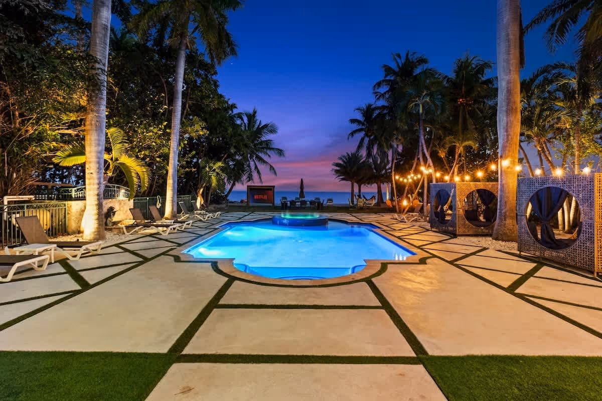 BEDROOMS1. Master Bedroom with a KING SIZE BED with excellent quality linens. A balcony with an amazing view of the beach and access to a full private bathroom with a hot tub.2. Bedroom with a QUEEN SIZE BED and access to a full private bathroom.3. Bedroom with THREE QUEEN SIZE BEDS and access to a full private bathroom.4. Bedroom with TWO FULL SIZE BEDS and access to a full private bathroom.*Two extra air mattresses.All the bathrooms are stocked with the toiletries our guests will need; towels are also included.Perfect for large groups.The Villa has a cherry hardwood flooring throughout, Also, a fully equipped kitchen with granite/stainless appliances and a gas stove.THE VILLA HAS AN OUTDOOR CAMERA TO CONTROL WHO GOES IN AND OUT, ALWAYS LOOKING FOR OUR GUEST SAFETY.-kayaks and paddle boards are available for rent only we don’t provide them, we have a partnership with a Keys rental for this!